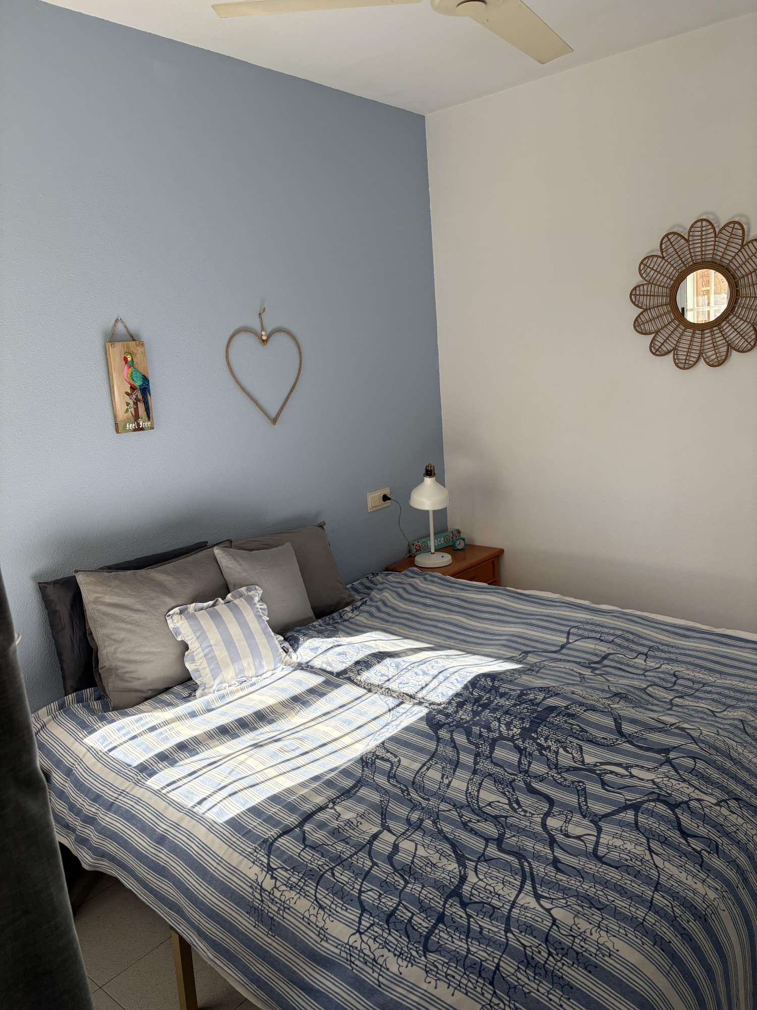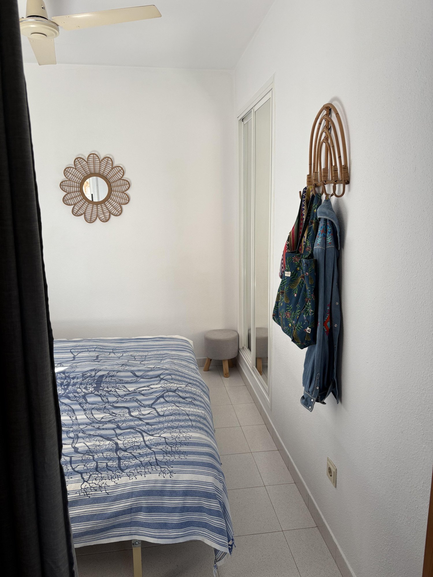 Vanuit de woonkamer heeft u toegang tot de slaapkamer met 2-persoonsbed (2 1-persoonsbedden van 90×200) en plafondfan, en de badkamer welke is voorzien van een ligbad met douche in bad, wastafel, toilet en wasmachine.