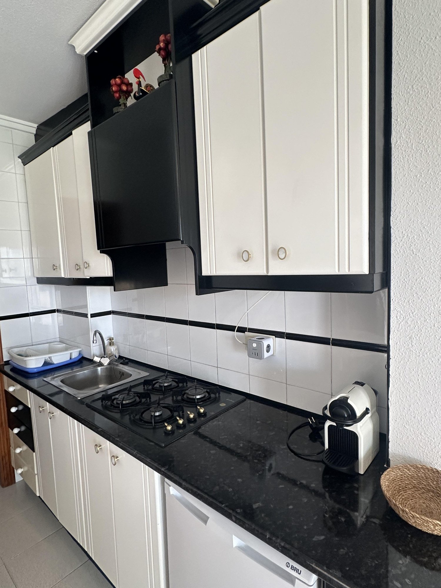 De keuken beschikt over een koelkast, oven, gaskookplaat met afzuigkap, Nespresso koffiezetapparaat.